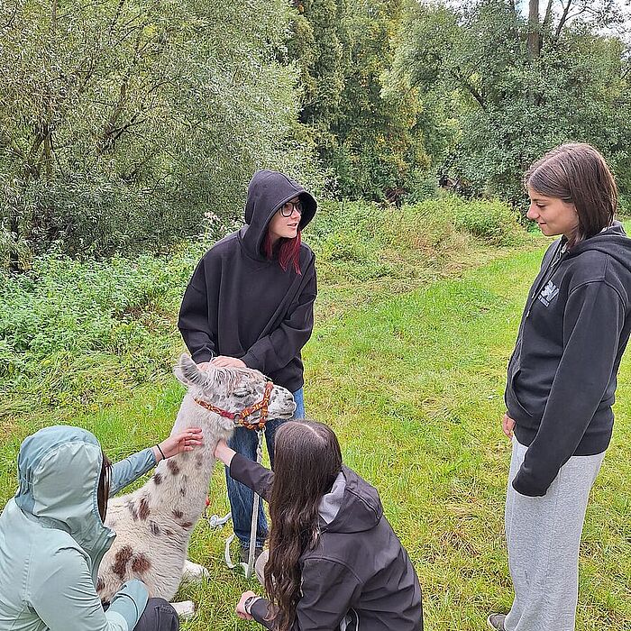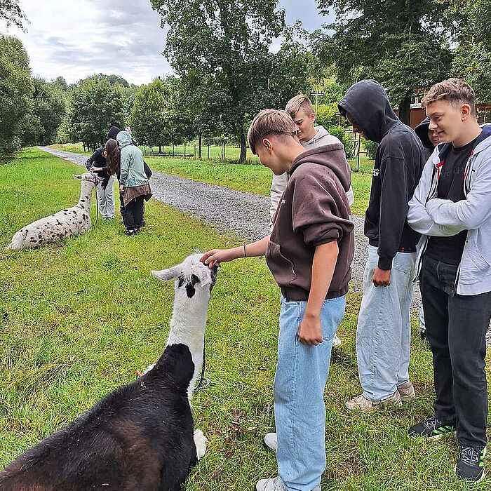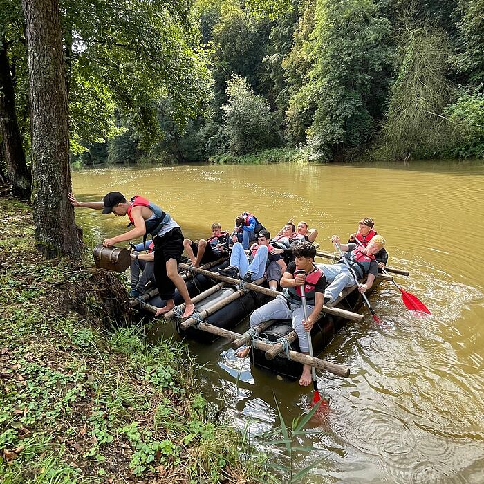 Am nächsten Tag wurde ein Floß gebaut, mit dem die Thaya befahren und schließlich ein Schatz geborgen wurde. Parallel fand soziales Lernen mit Lamas statt. Spielerische, sportliche und projektorientierte Ereignisse gaben Raum für Kennenlernen, für Beobachten und Reflektieren. Diese Erlebnisse haben die Klasse zusammengeschweißt. Am Freitag traten wir gut gelaunt, für etliche Schüler*innen ein Tag zu früh, die Heimreise an – mit vielen schönen Erinnerungen an zwei unvergessliche Tage.