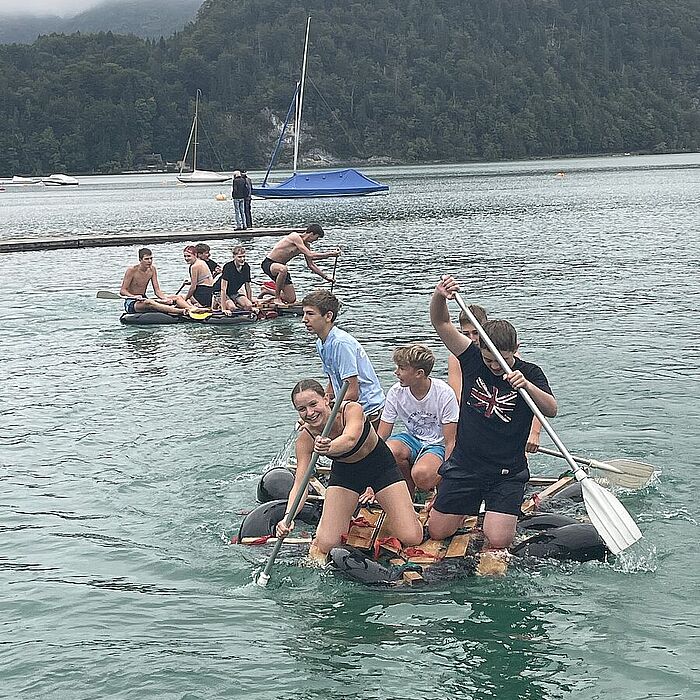 Mit den Öffis ging es nach St. Gilgen am Wolfgangsee – und schon startete unser Abenteuer. Gleich am ersten Tag hieß es: Floß bauen! Abends wurde es spannend: ein Spaziergang ganz ohne Licht, bei dem Handys natürlich tabu waren, und ein Besuch in einer stockfinsteren Höhle – alle Sinne auf volle Aufmerksamkeit! Danach ging es mit einer...