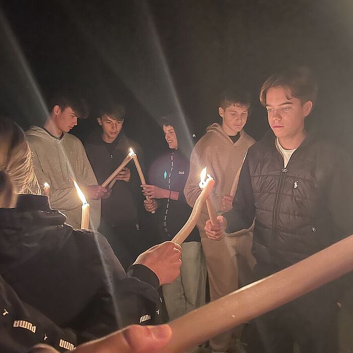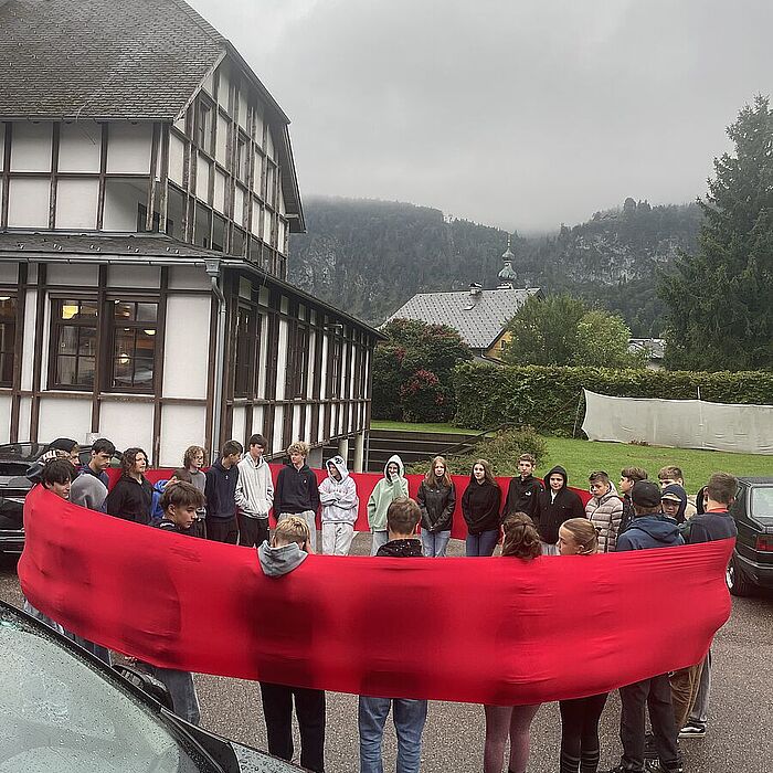 Mit den Öffis ging es nach St. Gilgen am Wolfgangsee – und schon startete unser Abenteuer. Gleich am ersten Tag hieß es: Floß bauen! Abends wurde es spannend: ein Spaziergang ganz ohne Licht, bei dem Handys natürlich tabu waren, und ein Besuch in einer stockfinsteren Höhle – alle Sinne auf volle Aufmerksamkeit! Danach ging es mit einer stimmungsvollen Fackelwanderung zurück zur Unterkunft.