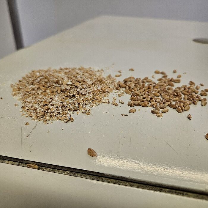 Schon bei der Anlieferung der Getreidekörner wird eine Probe gezogen und im...