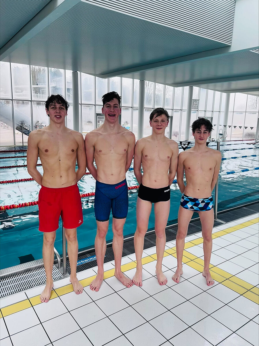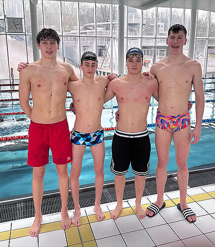 Sowohl in der Freistilstaffel (HOFMARCHER Daniel, PÜHRINGER Niklas, SCHWARZ Raphael, SEMLAK Florian) als auch in der Lagenstaffel (SEMLAK Florian, PÜHRINGER Niklas, HÖGLINGER Paul, SCHWARZ Raphael) lieferte sich unser Team spannende und extrem knappe Rennen mit der Konkurrenz.