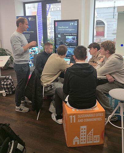 Besonders beeindruckend war die interaktive Demonstration, bei der ein Sandhaufen in Echtzeit in eine virtuelle Landschaft verwandelt wurde. Ebenso konnten die Schülerinnen und Schüler künstliche Intelligenz (KI) und digitale Stadtmodelle erkunden – inklusive der Möglichkeit, das eigene Haus in einer digitalen Stadtkarte zu finden.