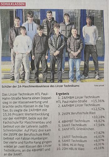 Insgesamt schafften es mehrere Klassen des Linzer Technikums unter die besten Zehn, was die kontinuierliche Arbeit, das Engagement der Schülerinnen und Schüler sowie die Unterstützung durch die Lehrkräfte widerspiegelt.