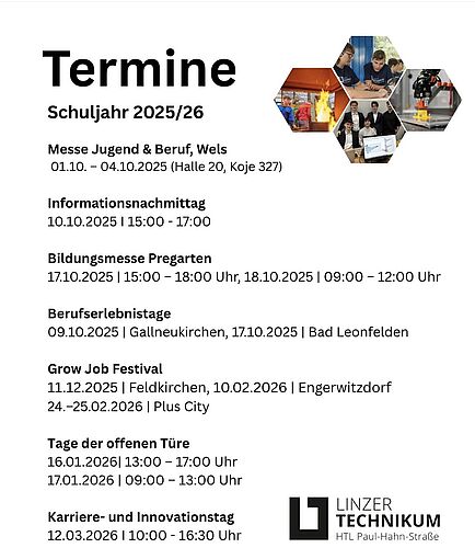 Lerne das Linzer Technikum kennen!Du möchtest mehr über das Linzer Technikum erfahren?Schau vorbei und entdecke unser Bildungsangebot! Zurück
