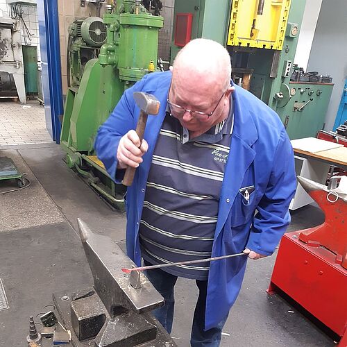 Obwohl du - genauso wie wir alle - körperlich älter wirst, ist es dir gelungen deinen Geist stets jung und dynamisch zu halten. Dein Zugang zu unseren Schülerinnen und Schülern ist immer ein sehr guter Zugang gewesen. Sicherlich hat dich der Unterricht in der Schmiede auch dabei unterstützt. Voller Energie konnten sich deine SchülerInnen vorm Feuer und am Amboss in archaischen Tätigkeiten austoben. Es war die Kraft des Verstandes und die Kraft der Muskeln deiner SchülerInnen gefordert. Auch du hast regelmäßig den Hammer geschwungen und so deine Muskeln täglich gestählt.